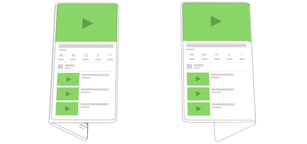 所以当三星发布了 Infinity Flex 之后,以此为基础,它们决定与 Google 联手共同开发可折叠手机软件界面,而在演示中,我们似乎已经能够看到,在交互变化之后,柔性折叠屏手机开始展现出另一种我们想象中的样子: